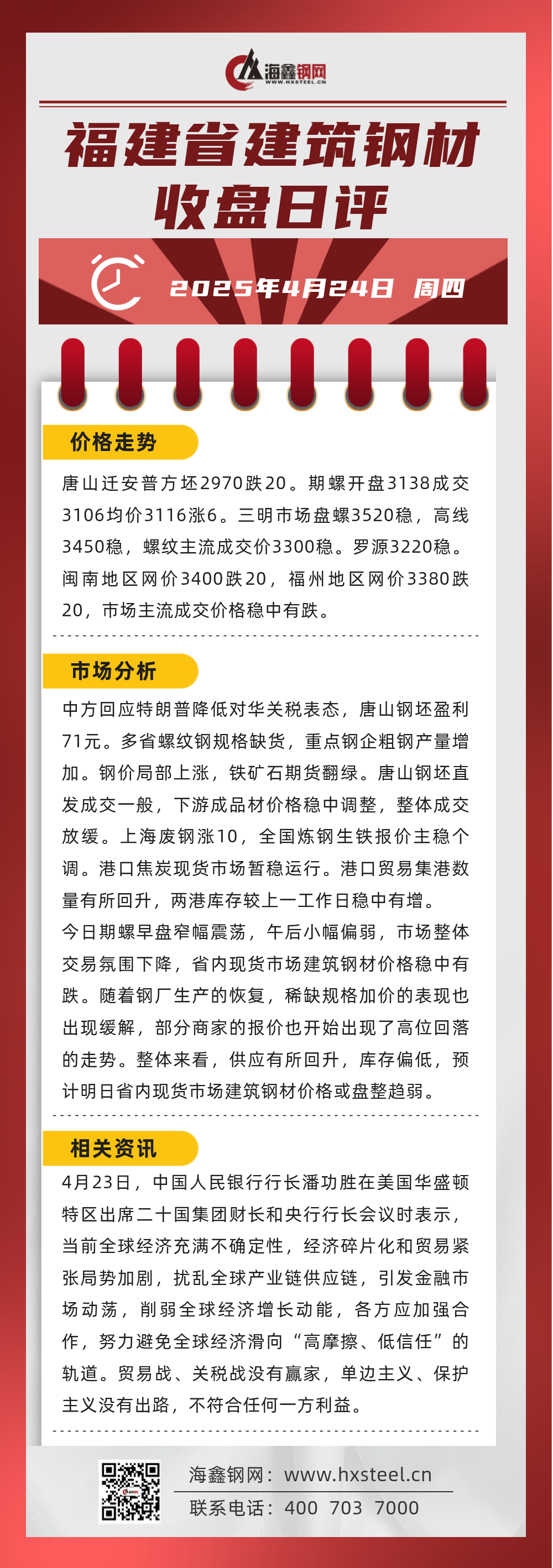 4月24日福建省內(nèi)建筑鋼材收盤日評(píng)